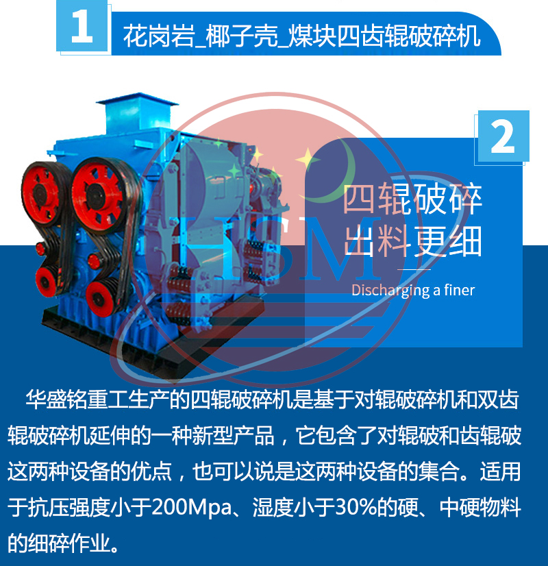 【產(chǎn)品介紹】:華盛銘重工生產(chǎn)的四輥破碎機是基于對輥破碎機和雙齒輥破碎機延伸的一種新型產(chǎn)品,它包含了對輥破和齒輥破這兩種設(shè)備的優(yōu)點,也可以說是這兩種設(shè)備的集合。本機器具有使用維修費特低、破碎比大、性能可靠、粉塵少、噪音低等特點。。
