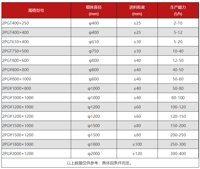 市場生產這類對輥制砂機設備的廠家有很多,不同廠家產出設備型號多少肯定是有差異的。這里以紅星對輥制砂機設備為例,具體設備型號規格羅列如下: